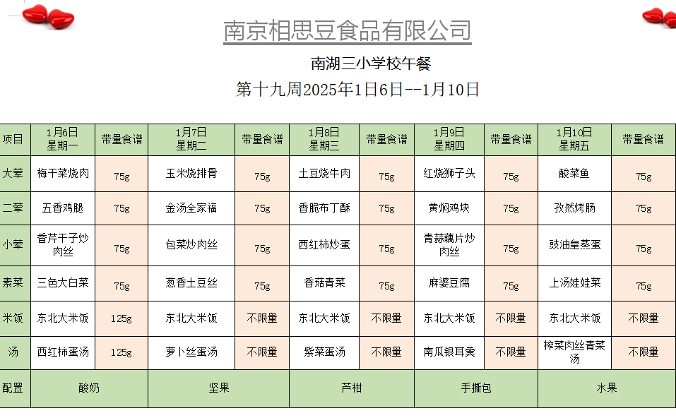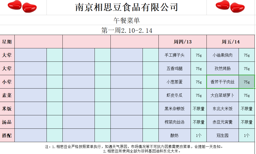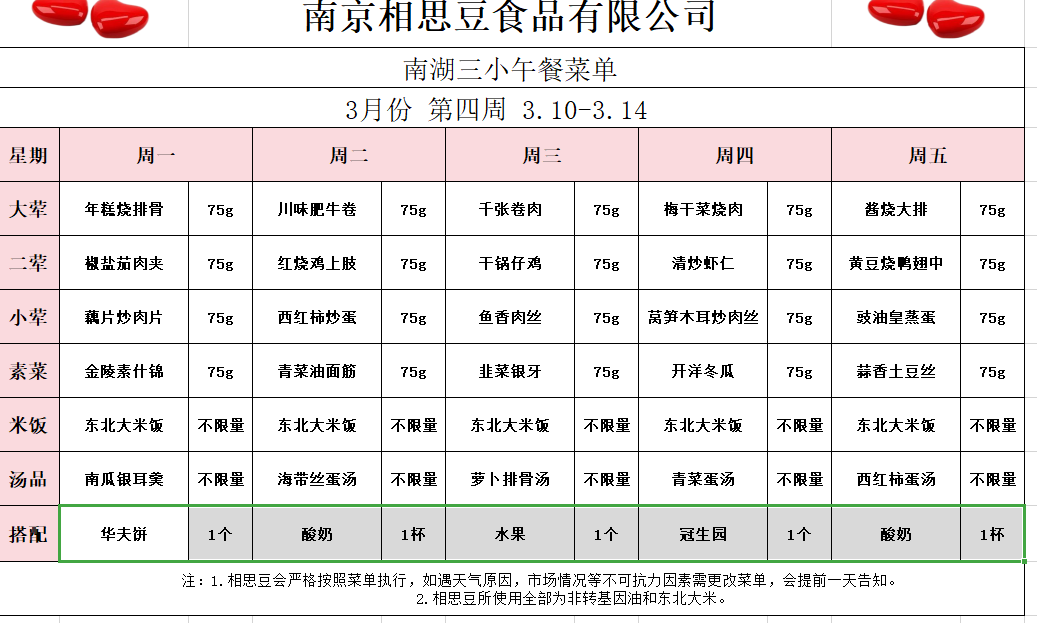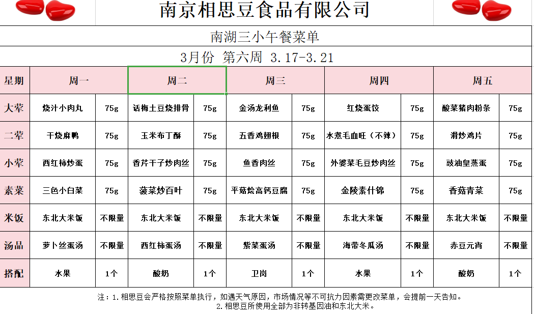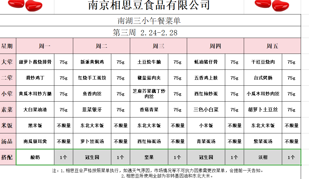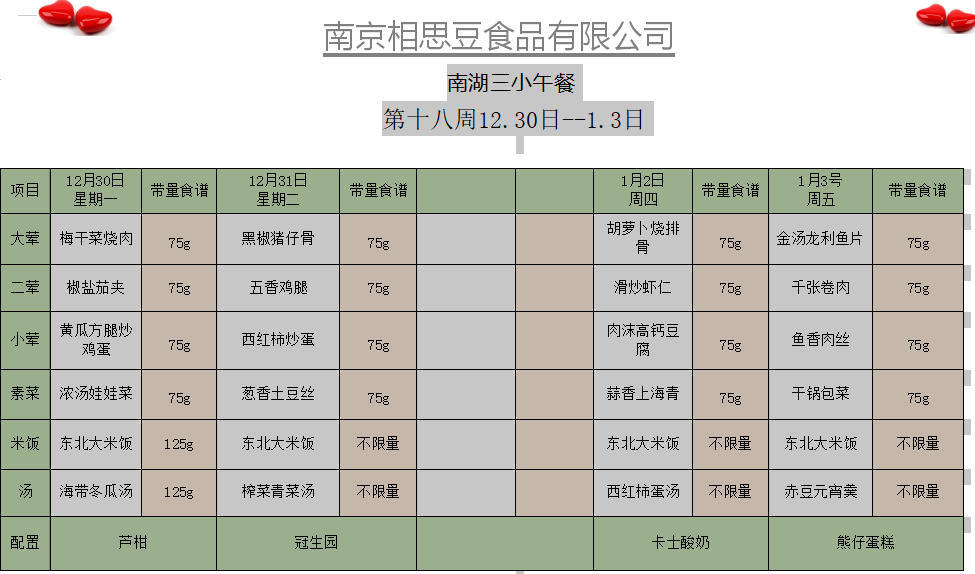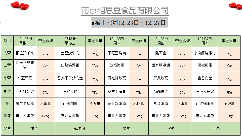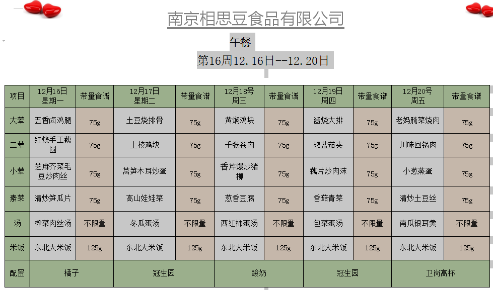 每周菜谱
