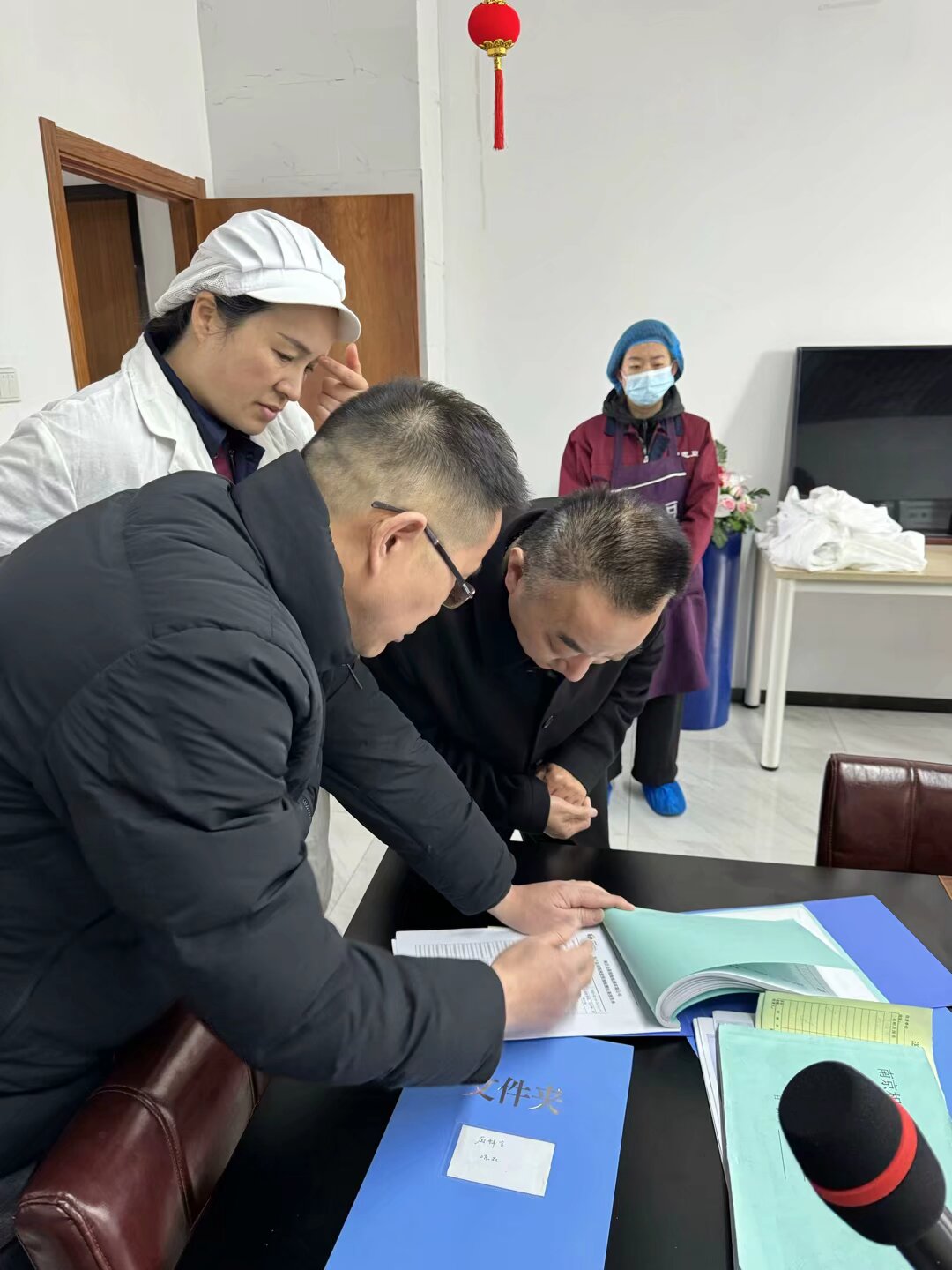 2025年2月20日上午,南京市南湖第三小学校长、党支部书记赵光华以及学校家长代表陈月珍陪同建邺区教育局后勤管理中心顾建科长、赵主任,对相思豆餐饮公司进行了“四不两直”检查,深入了解学生配餐工作的开展情况。此次检查不仅是对餐饮公司的一次全面“体检”,更是为了确保每一位学生吃得安全、吃得营养、吃得健康1. 四不两直,直击现场本次检查采用“四不两直”方式,即不发